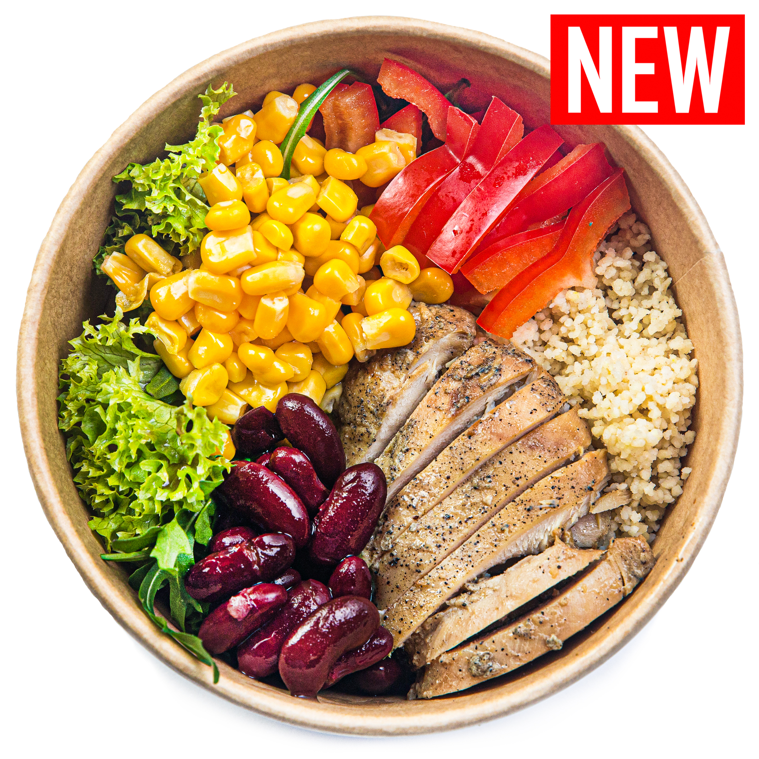 Філе стегна, кус-кус, кукурудза, перець солодкий, червона квасоля, лист салату, рукола, 260гр.